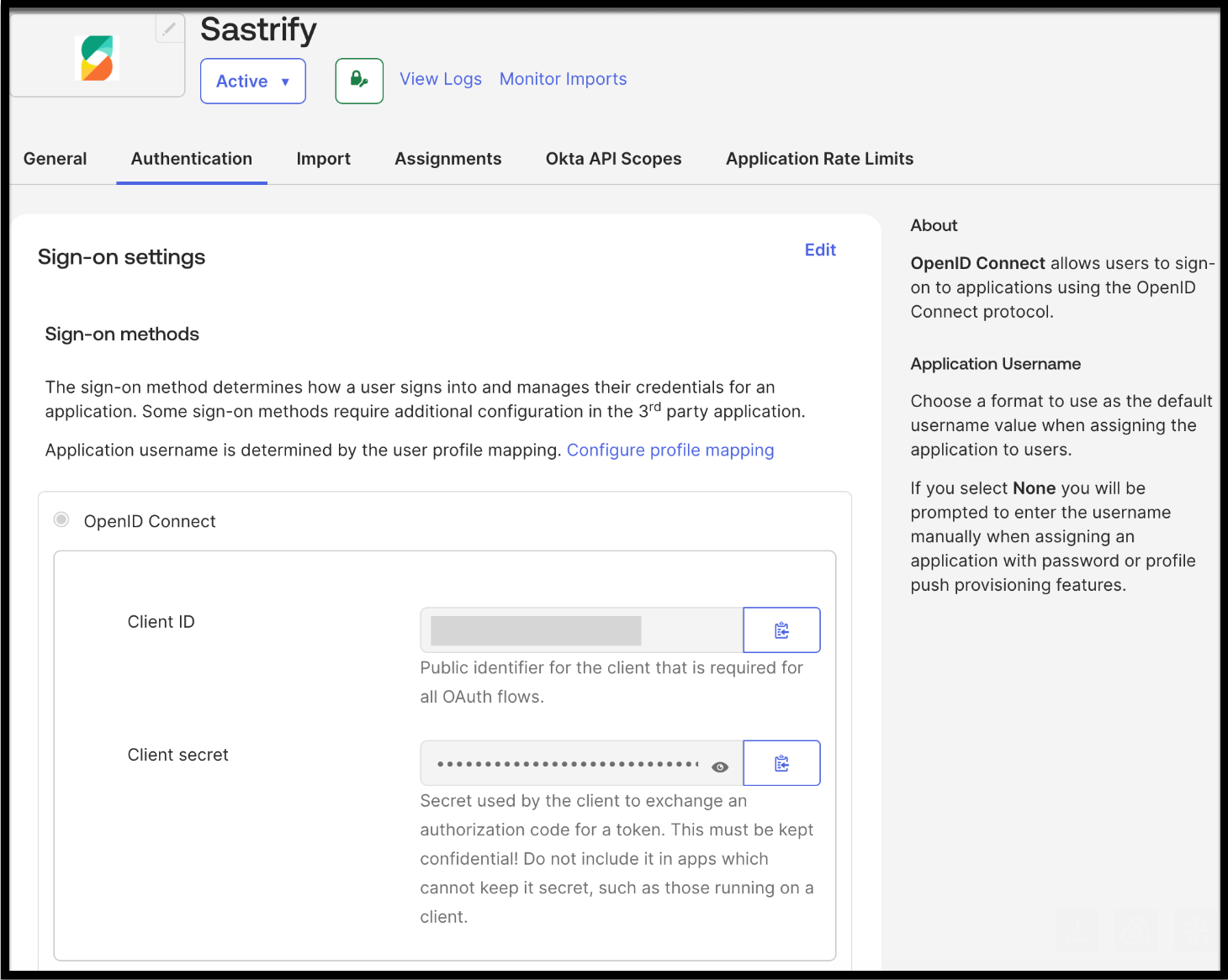 - Go to the Sastrify App in Okta > General tab.