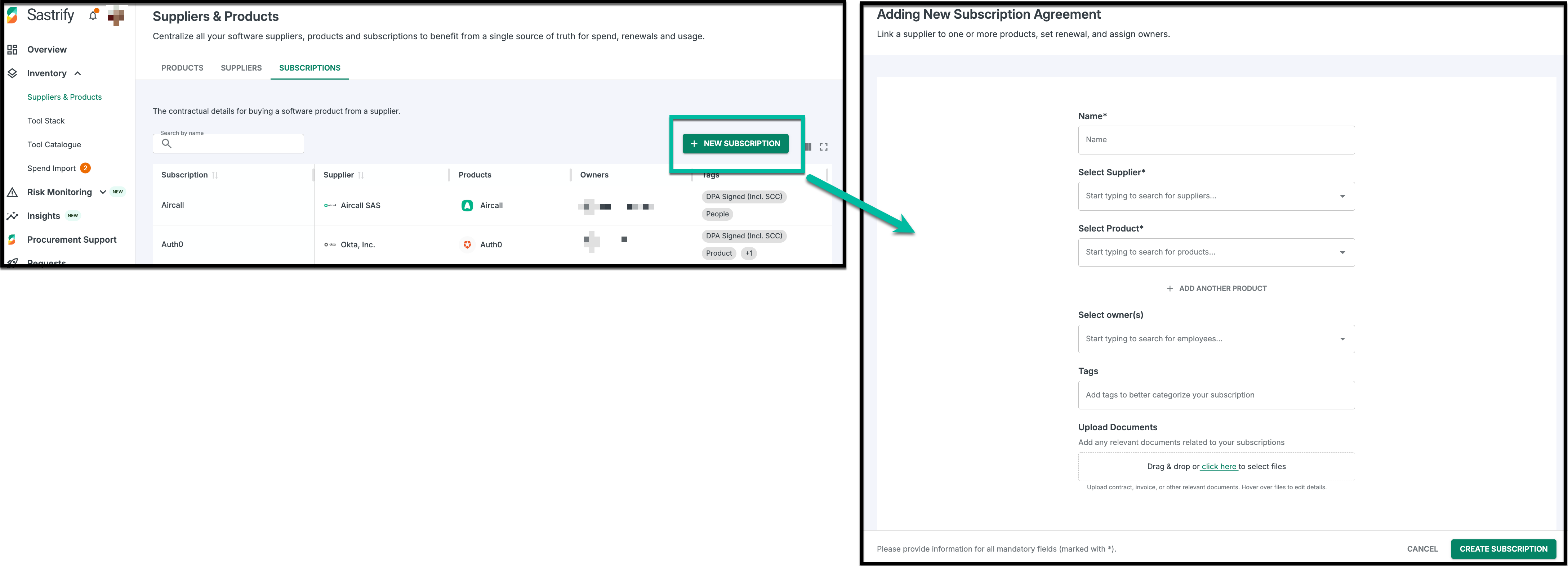 - Upload Documents: Upload relevant documents such as contracts, proposals, or DPAs. This ensures all subscription-related documents are consolidated and stored in a central location.
