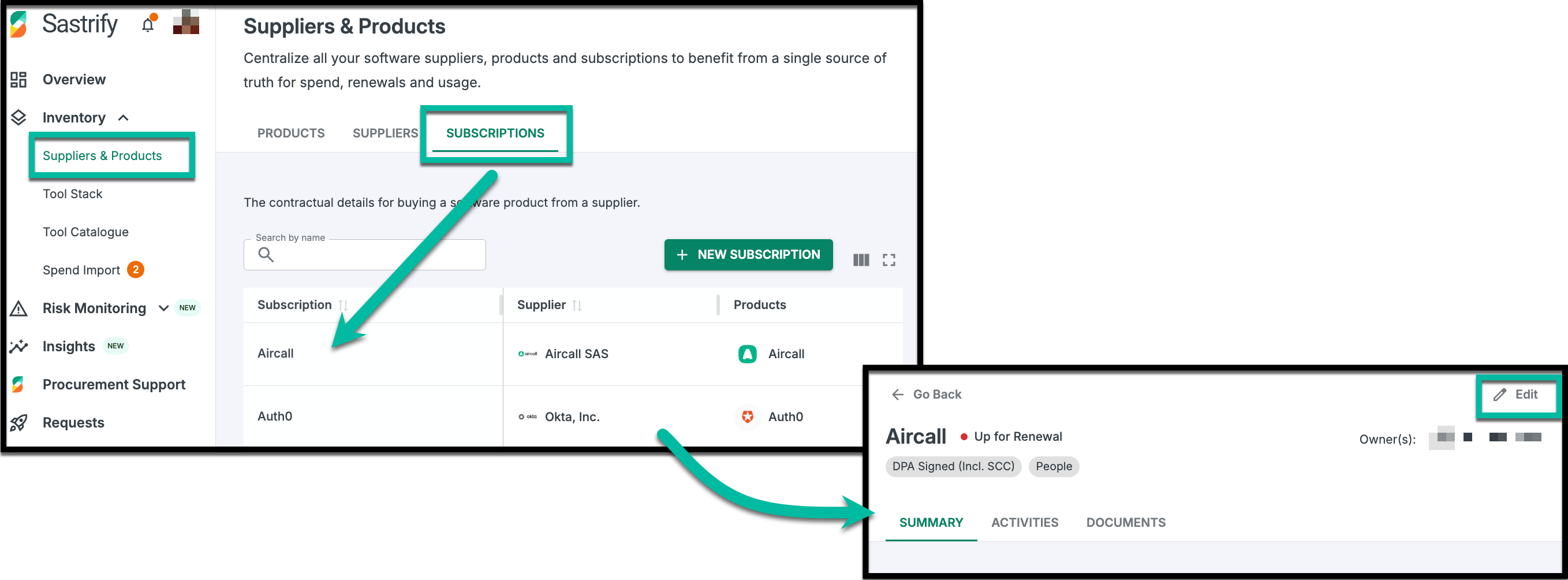 Go to Inventory > Suppliers & Products and click on a specific subscription.