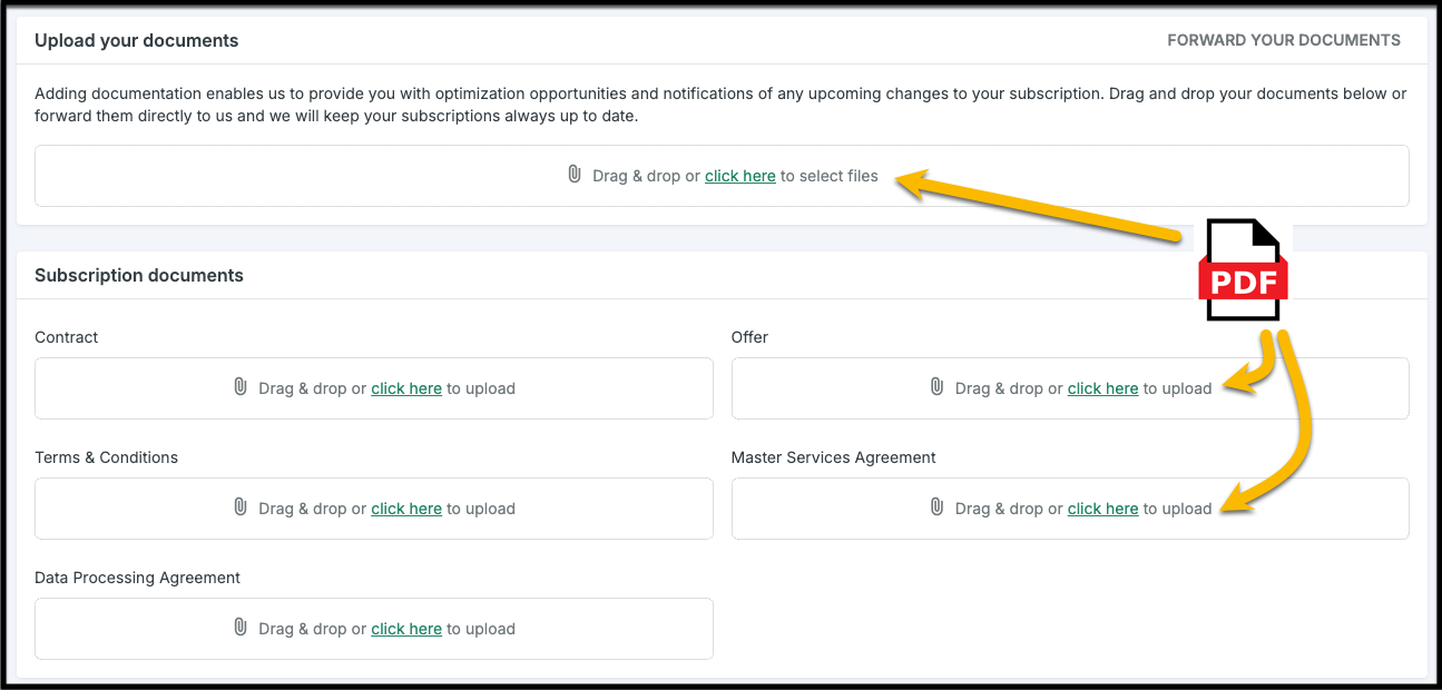 Contracts: Primary agreements. Tip: Uploading here activates Contract AI, which automatically extracts key dates and data into your Summary tab.
