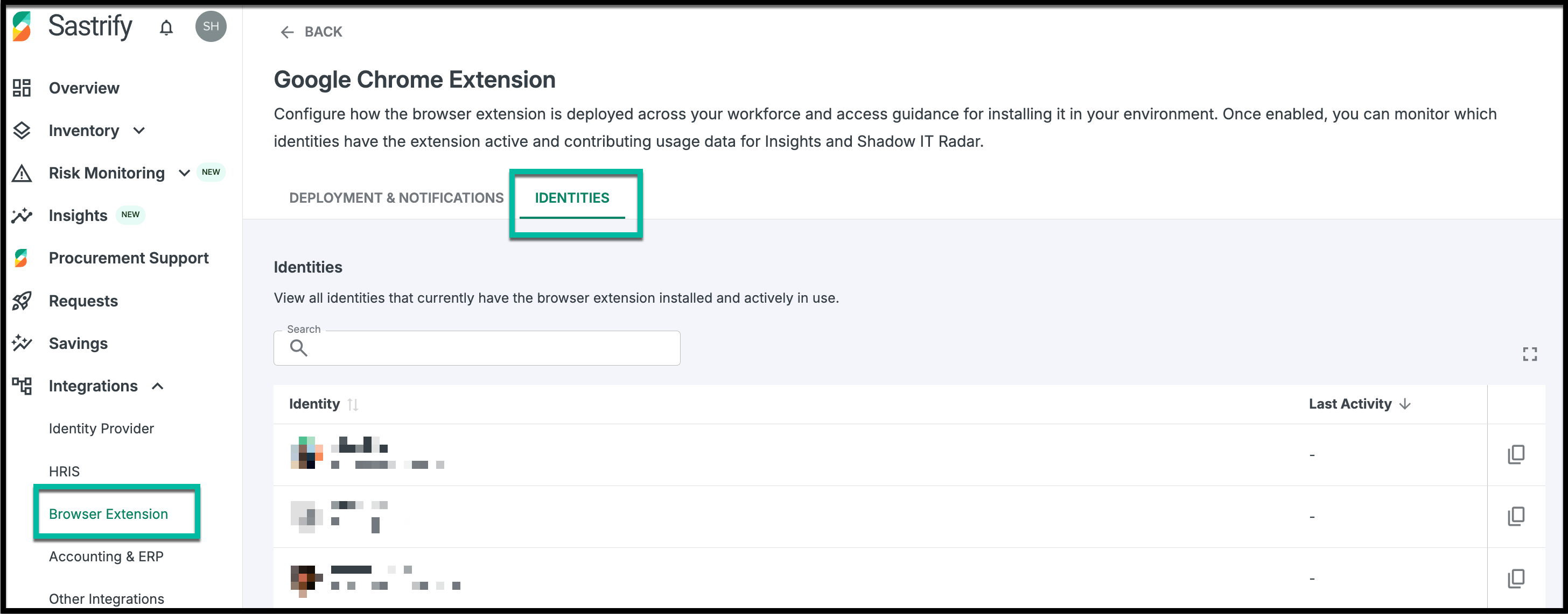 The Sastrify Browser Extension is a lightweight browser add-on designed to enhance visibility into SaaS usage across your organization. It seamlessly supports the discovery of shadow IT and provides actionable usage insights directly within your Sastrify platform.