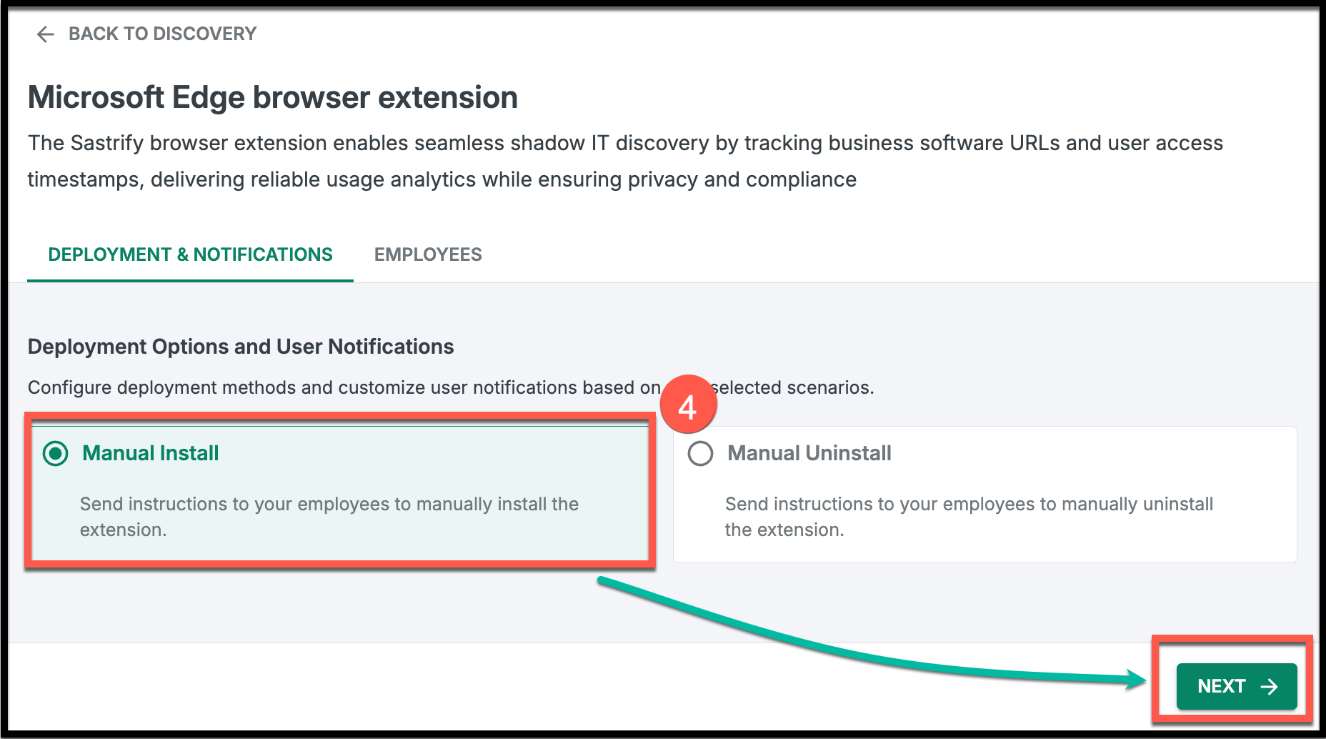 Manual Installation: This decentralized approach requires your Sastrify admin to send installation notifications to selected users. Each notified employee must then manually install the browser extension on their own work browser.