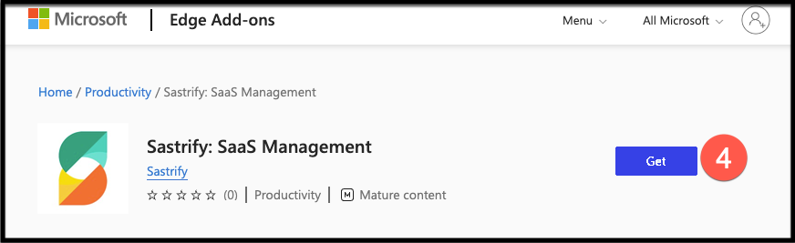 - Click the link in the email to open the Sastrify Edge Extension page in the Edge Add-ons Store.
