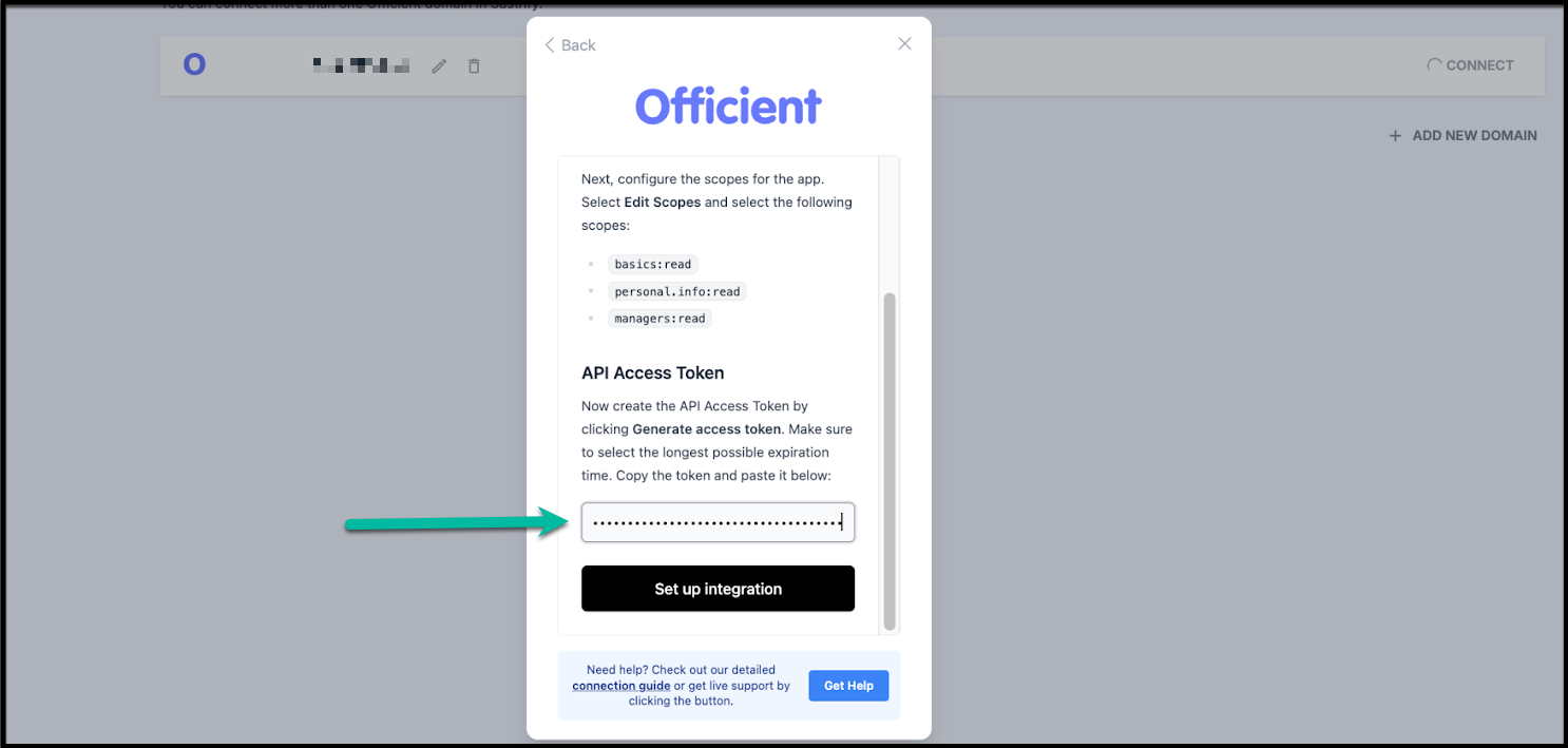 Click Add New Connection, enter a name (e.g., "Officient HR"), and click the checkmark to confirm.