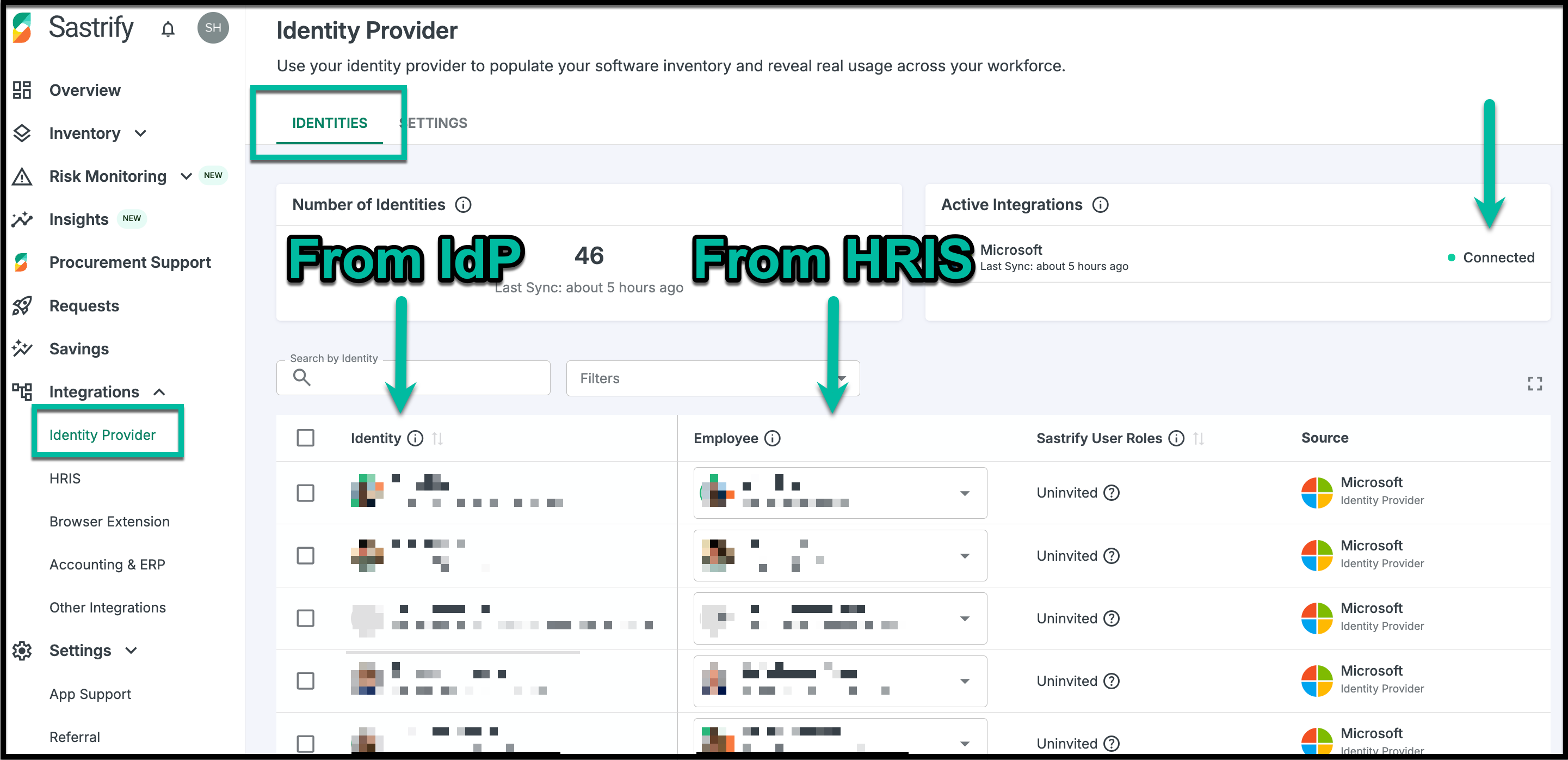 Identity Enrichment: Once an IdP is connected, Navigate to Integrations > Identity Provider. Sastrify will automatically match Officient records to identities, enriching them with job titles and department data.